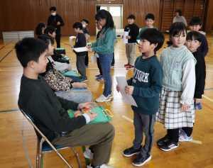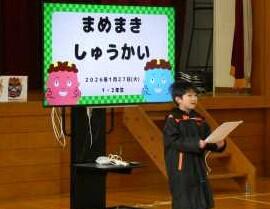 1月27日の全校朝会は、1・2年生企画の「豆まき集会」でした。節分にちなんだクイズや、各学年の「退治したい鬼」の発表、そして楽しいゲームなど盛りだくさんの楽しい時間でした。会の準備や進行を立派にやり遂げた1・2年生に全校生から大きな拍手が贈られました。