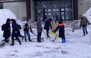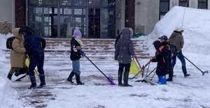 登校後、一生懸命除雪をする児童の姿がたくさん見られました。